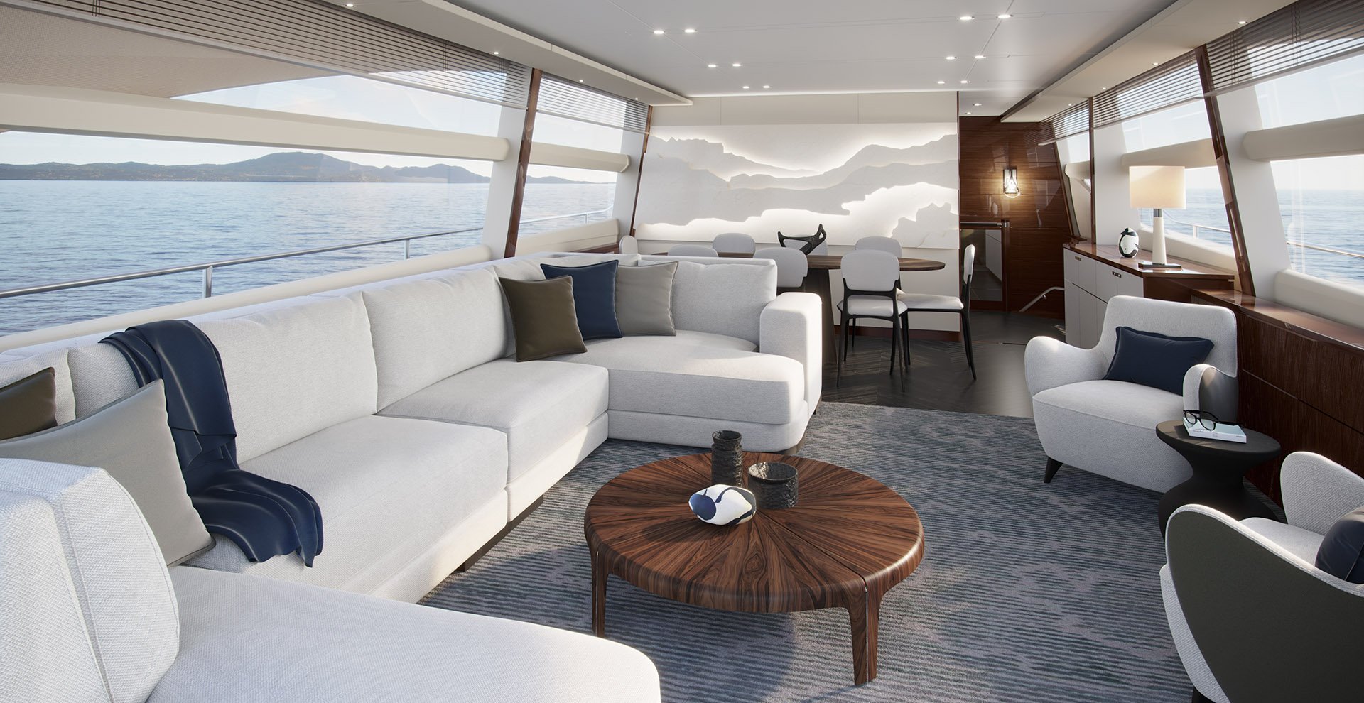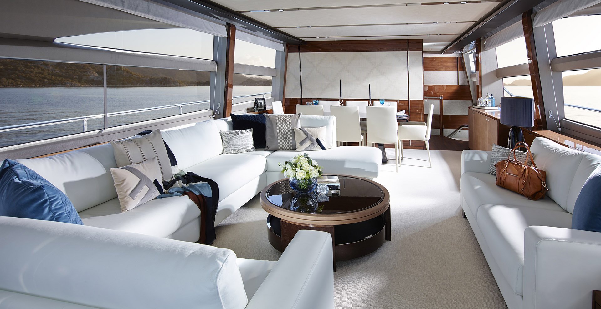 This Princess 88 is entering an exciting new life as a charter yacht. With this in mind it was imperative to design a practical space that can deal with a busy environment and going on looking as great as the day it was installed for many years.