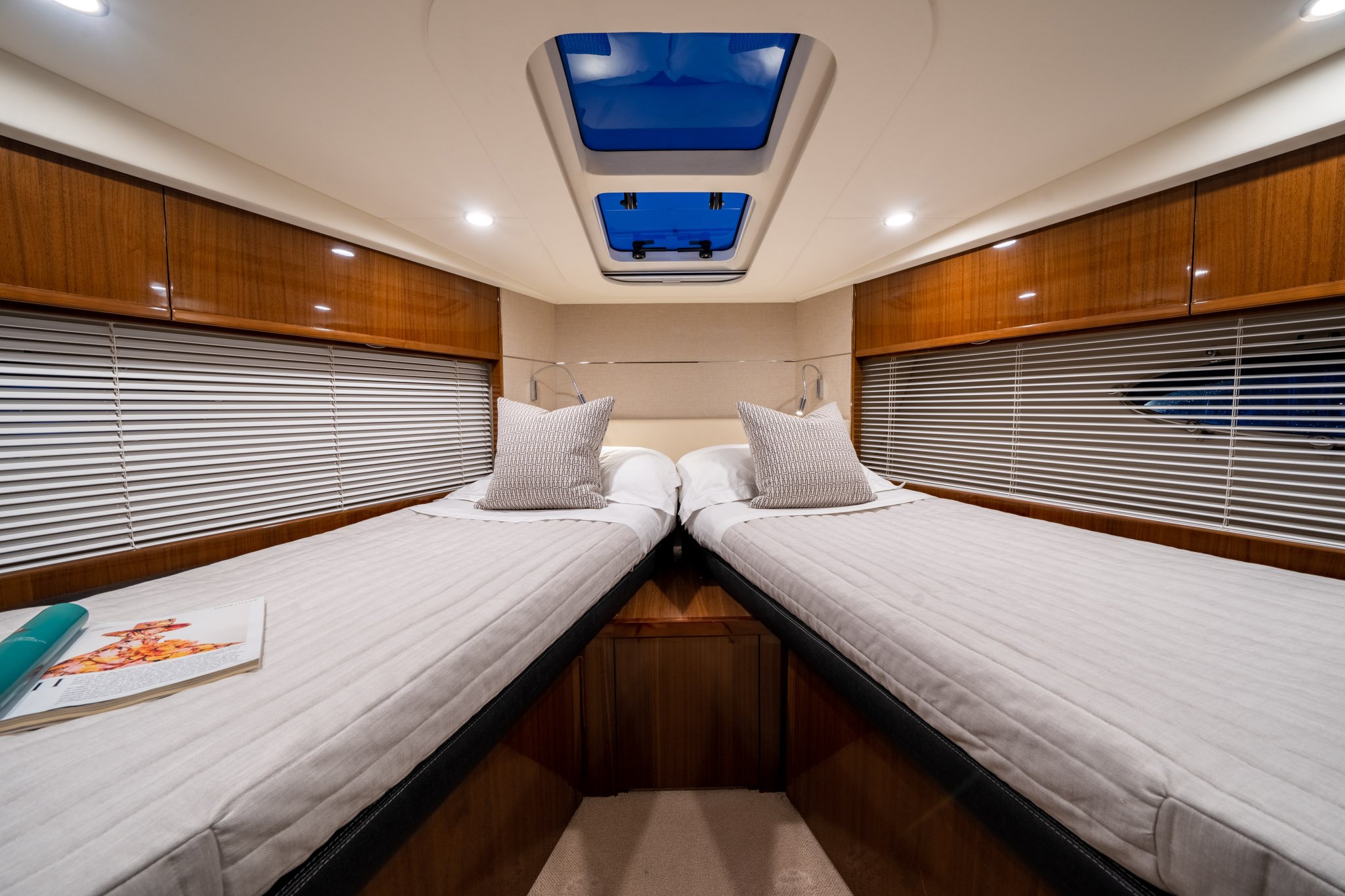 Both cabins showcase the finest layered textures with reupholstered headboards, new fitted bedcovers and scatter cushions to provide elevated yet intimate spaces. The Cabin portholes have been repaired to address corrosion damage and leakages.