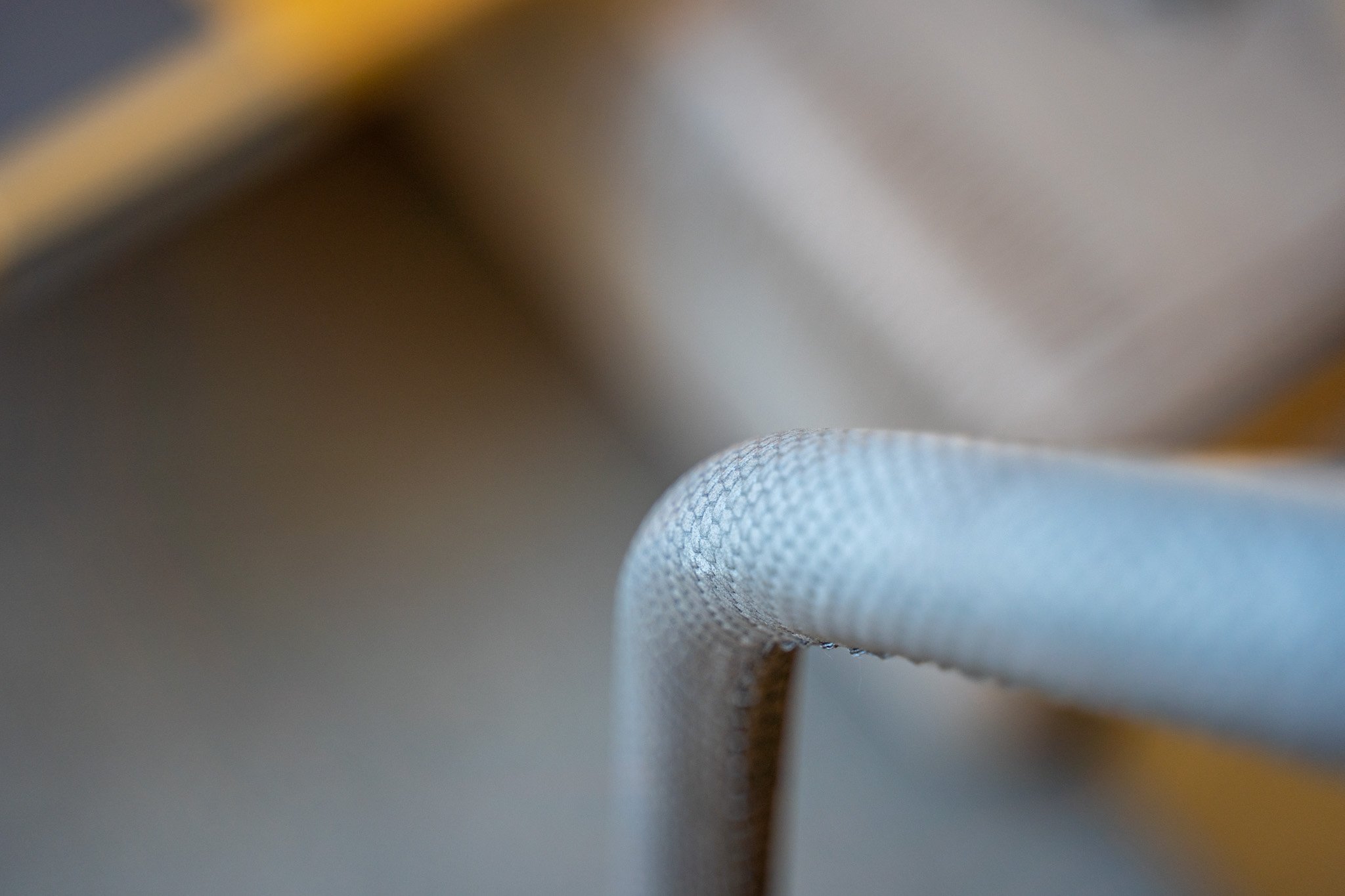 The exterior upholstery has been remade with new foams and covered in a classic lighter fabric with beautiful, sleek symmetrical curves in a contrasting colour.
