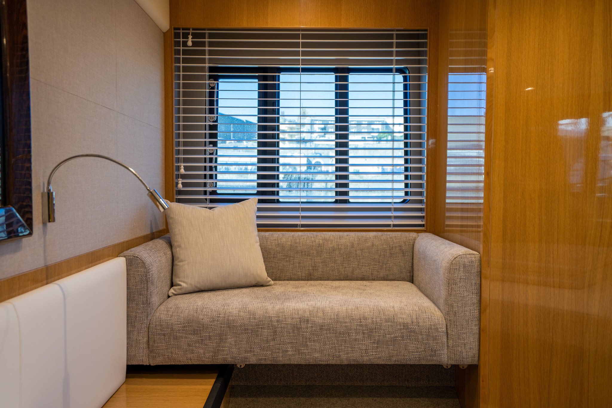 By softening the edges to the Master Stateroom sofa armrest and exterior base cushion, alongwith using a brighter upholstery fabric – we instantly create a more modern, inviting and sleek feel to the design.