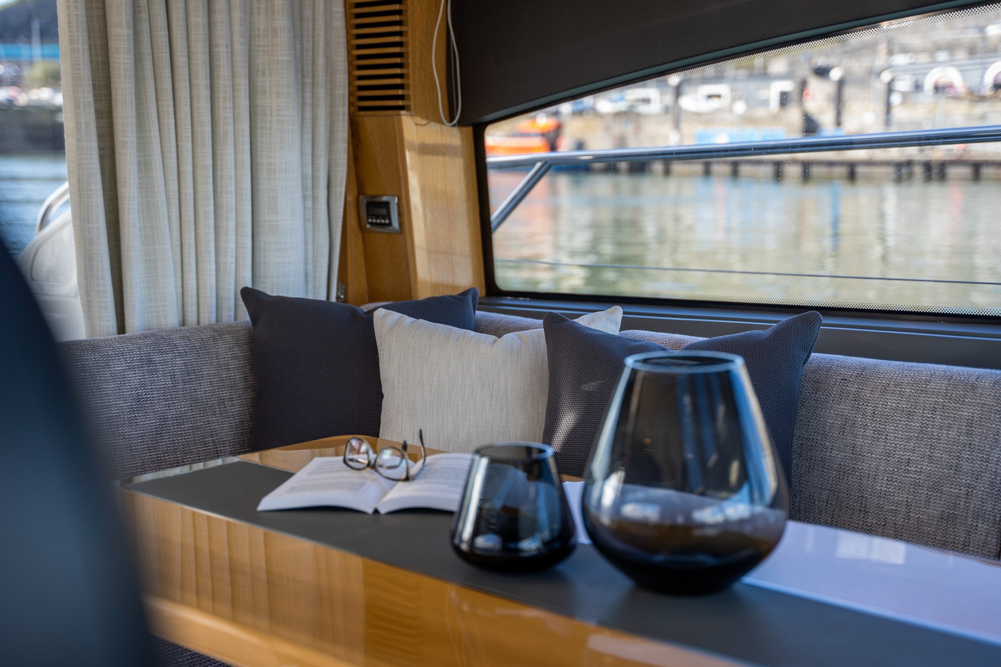 This 2012 Fairline Targa 50GT project was complete within just over 3 weeks on the owners berth. The soft greys, contrasting colours and textures of this scheme now bring a modern high-end feel to this yacht.