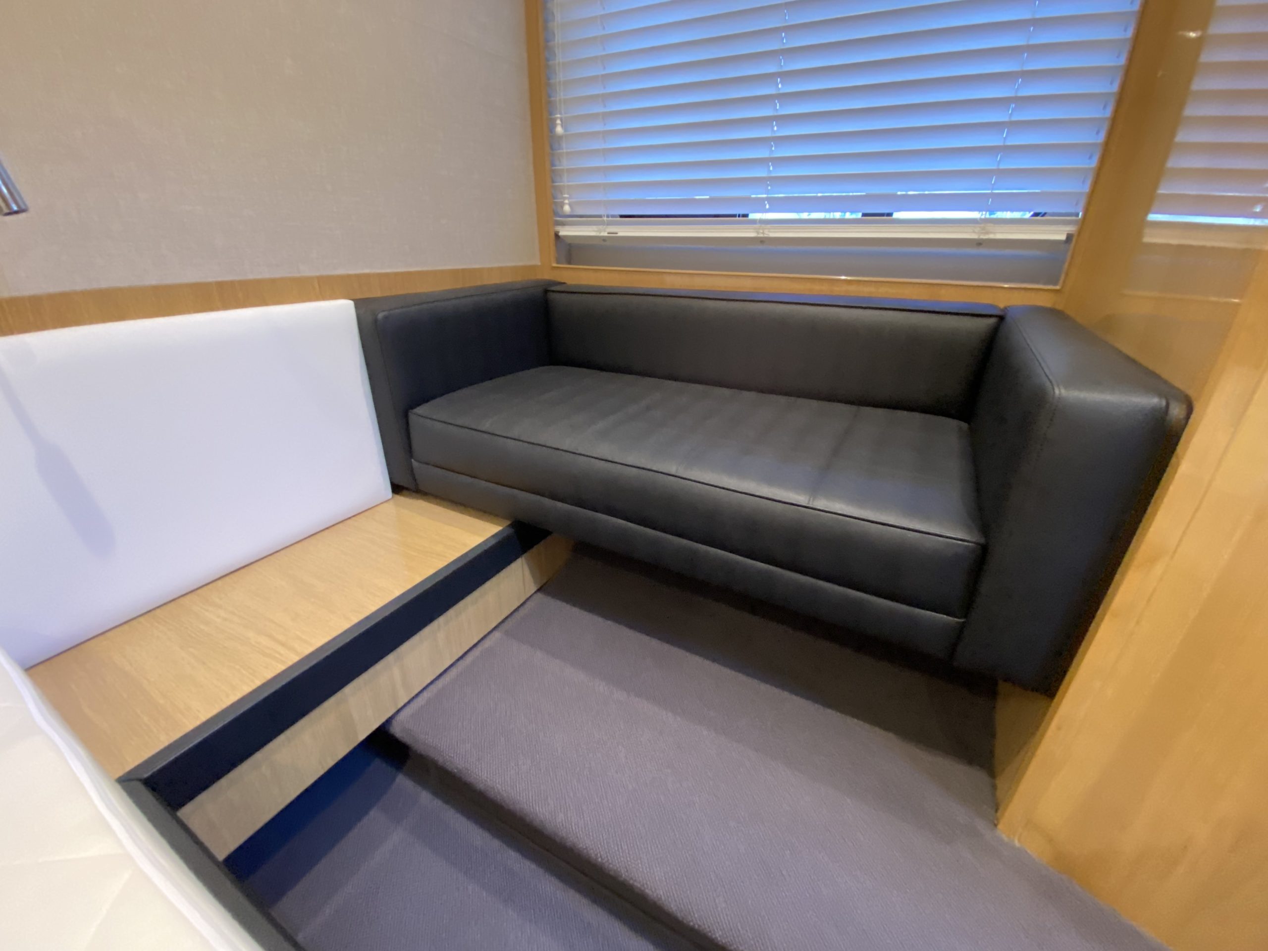 We have carpeted the wooden floor throughout the yacht with a looped pile carpet to modernise and add a level of comfort to the owners boating predominantly in the UK.