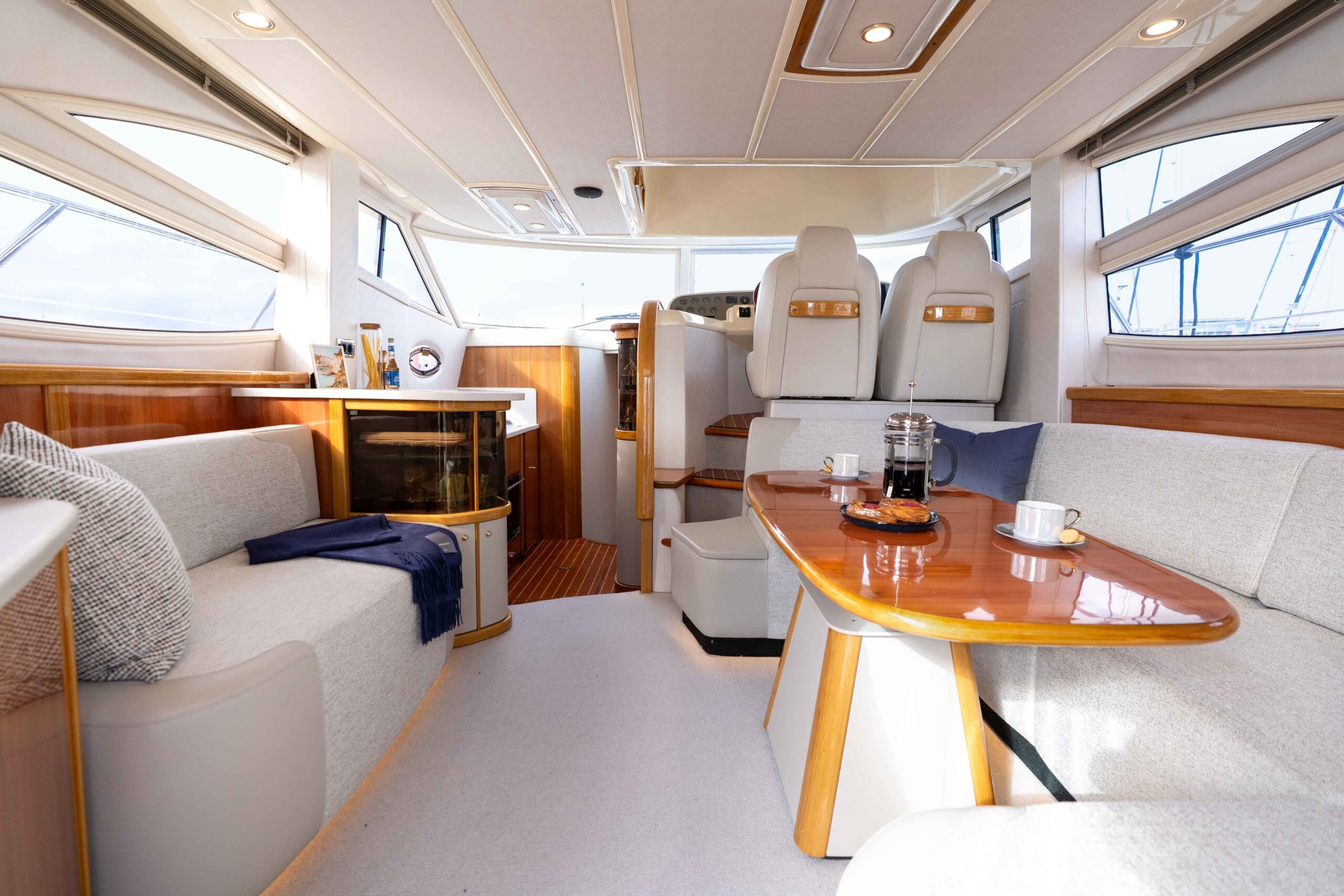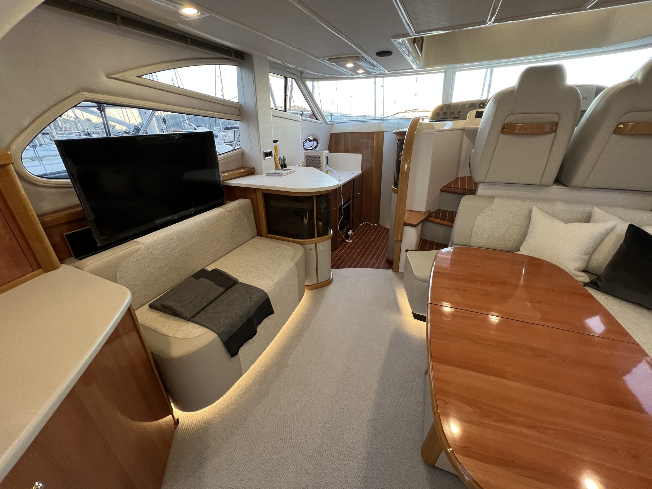 All exterior upholstery has been redesigned, along with the hull and superstructure professionally polished and detailed, restoring back to the original state. We have fitted new teak decking to the Cockpit, Flybridge steps and transom for that modern luxurious feel.