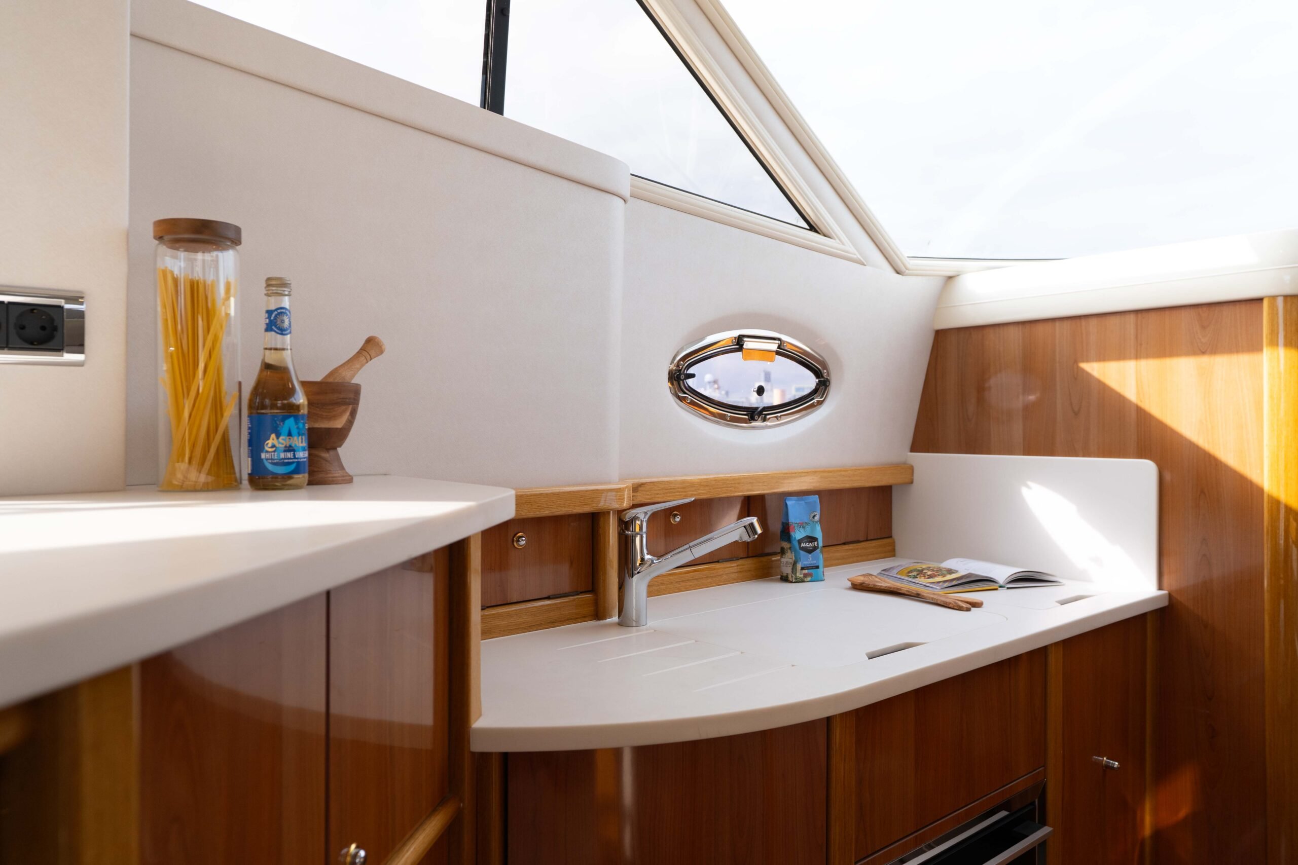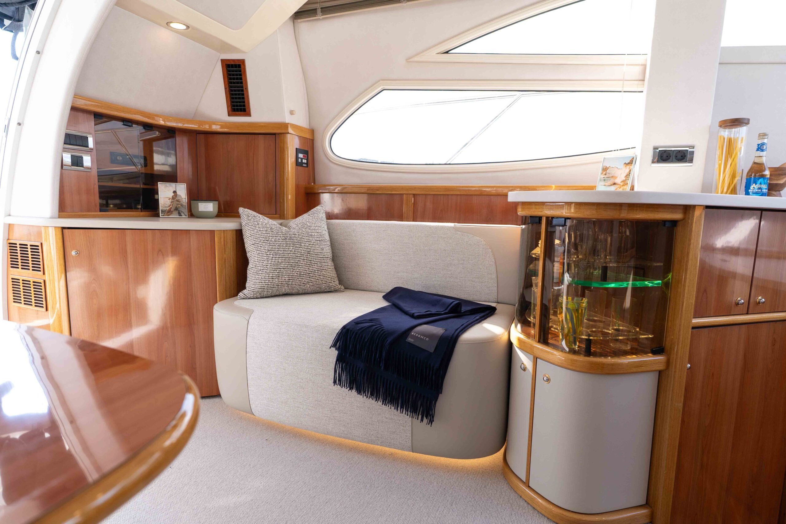 The yacht arrived in need of significant upgrades. The interior showed signs of wear, with aged upholstery, outdated fixtures, and faded wood finishes. The exterior had suffered from years of exposure to the elements. Additionally, the navigation and onboard systems required modernisation to enhance usability and performance.