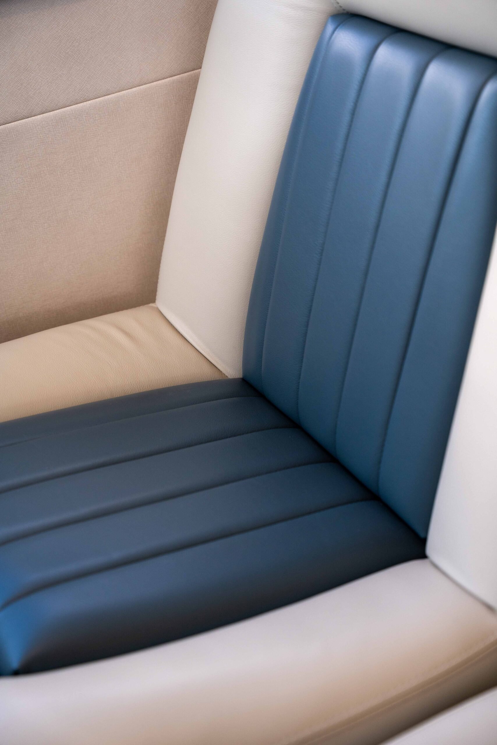 The material tones have been meticulously selected to compliment and enhance the original warmer tones of GRP elements remaining in the boat and also the boat timber itself. By doing this you create a completely refreshed space with a calming mood.