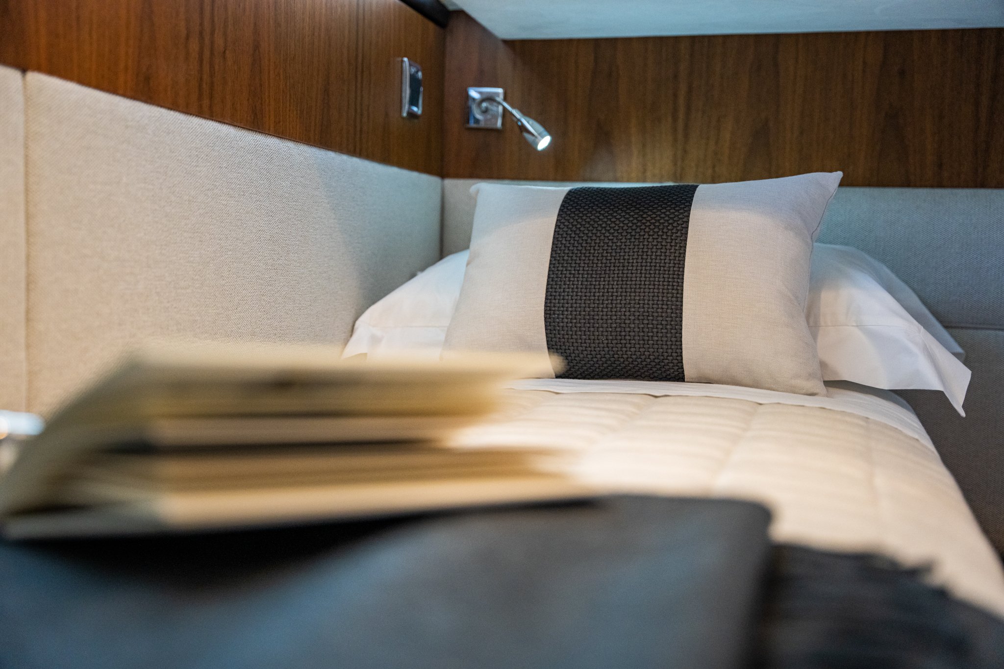 This 2012 Fairline Targa 50GT project was complete within just over 3 weeks on the owners berth. The soft greys, contrasting colours and textures of this scheme now bring a modern high-end feel to this yacht.