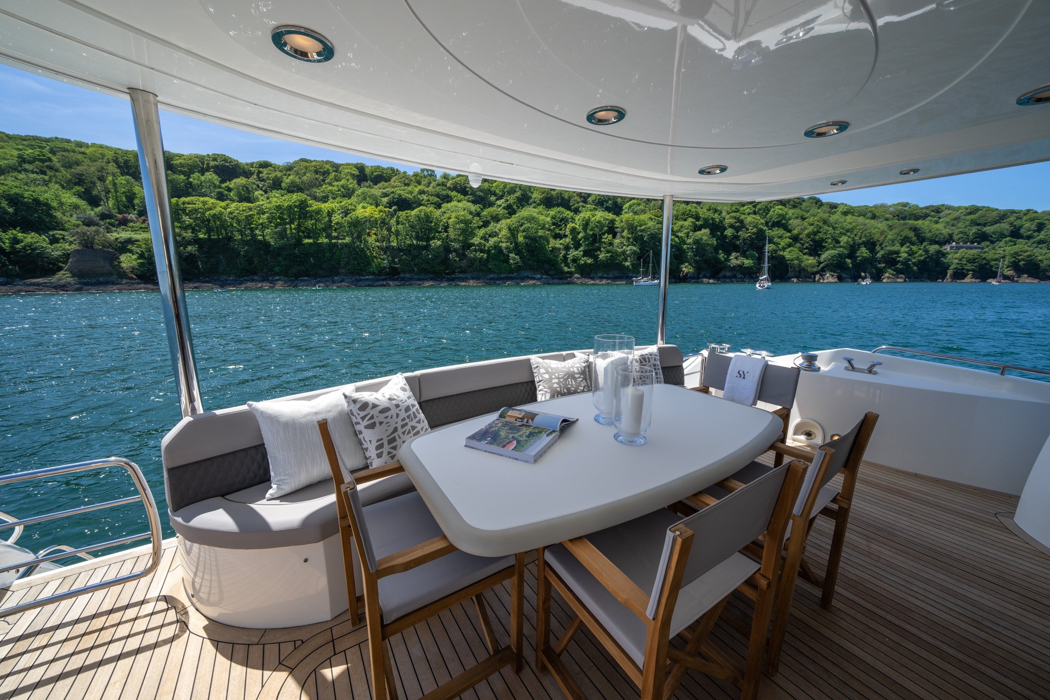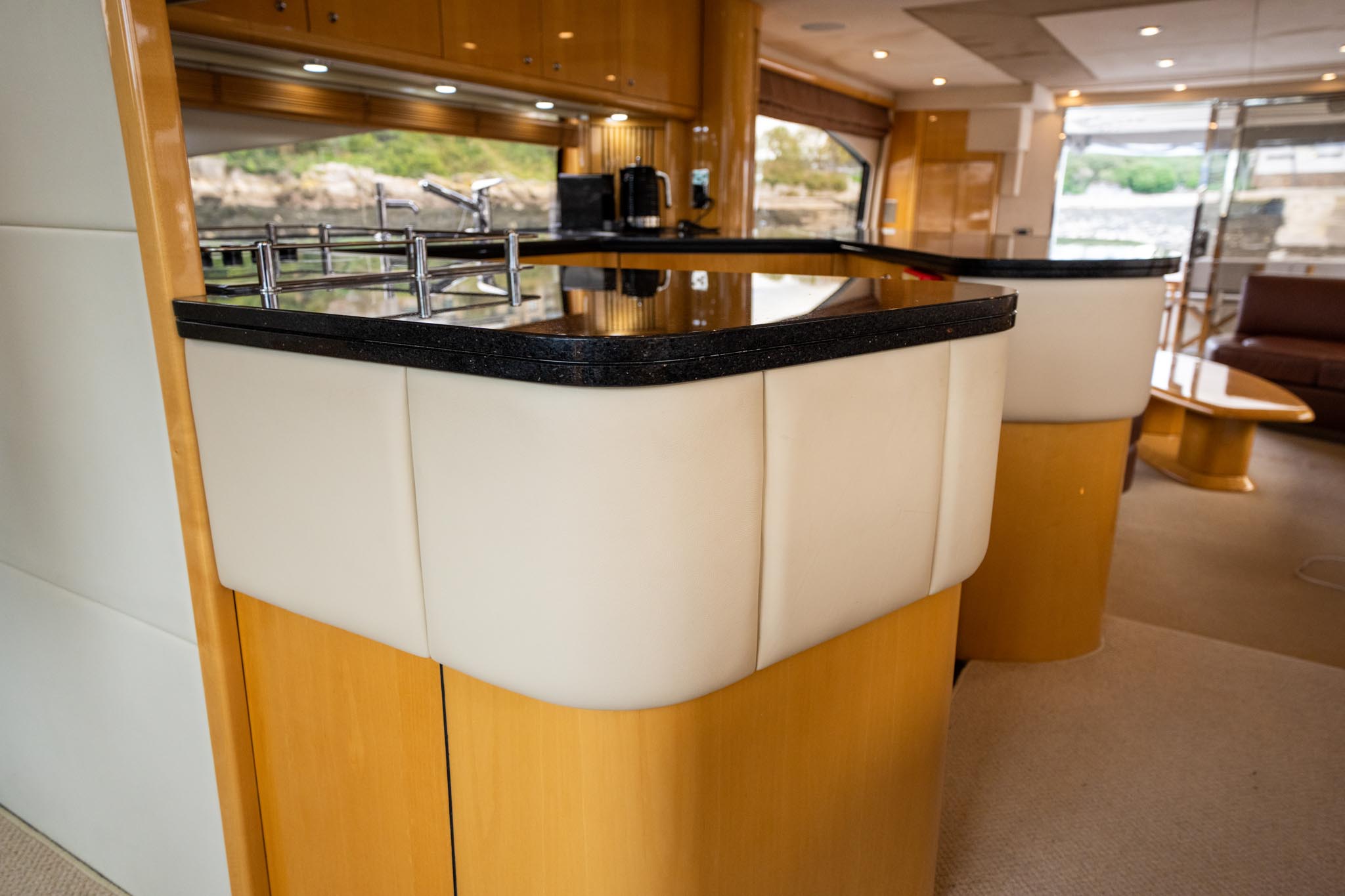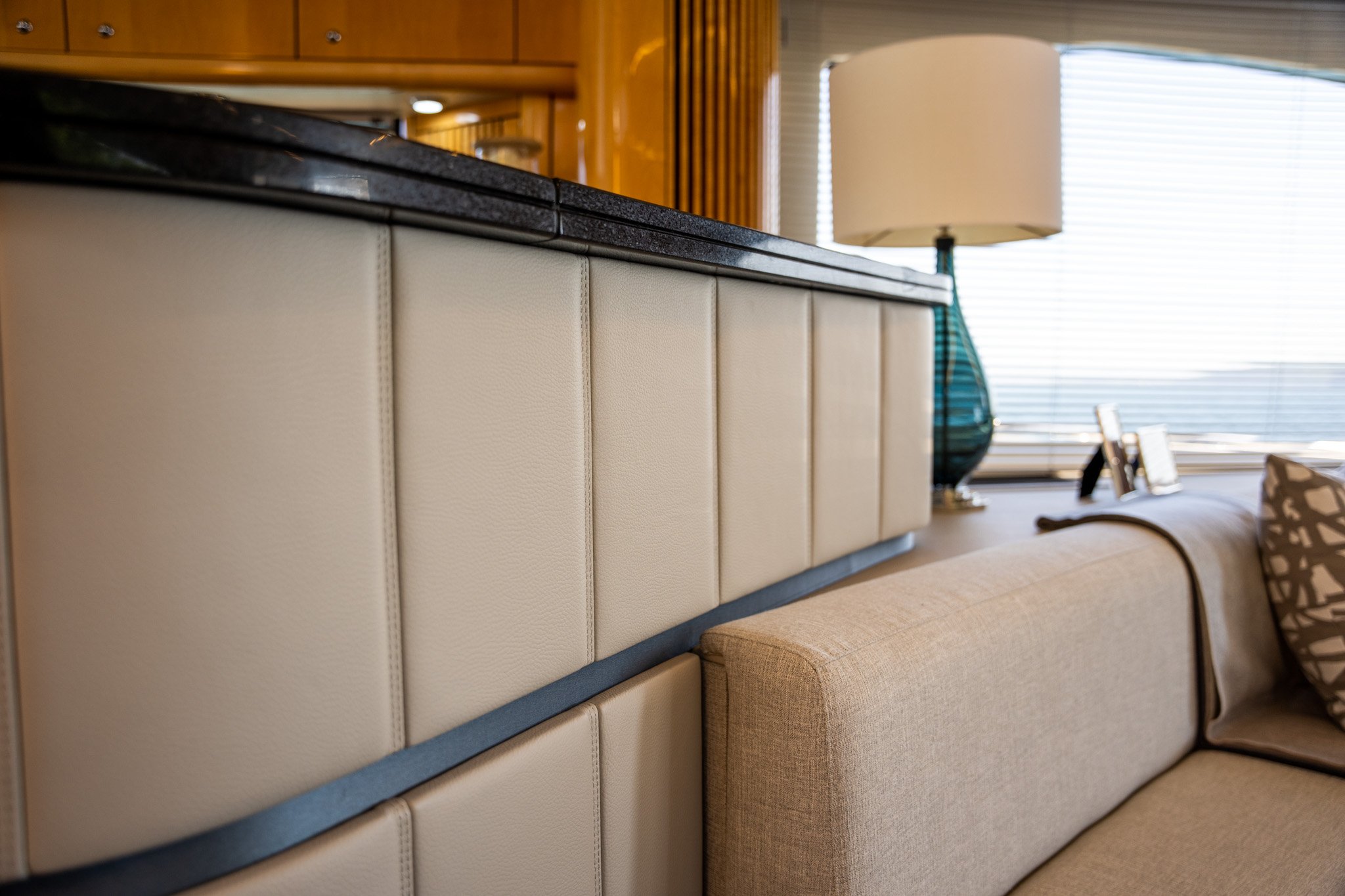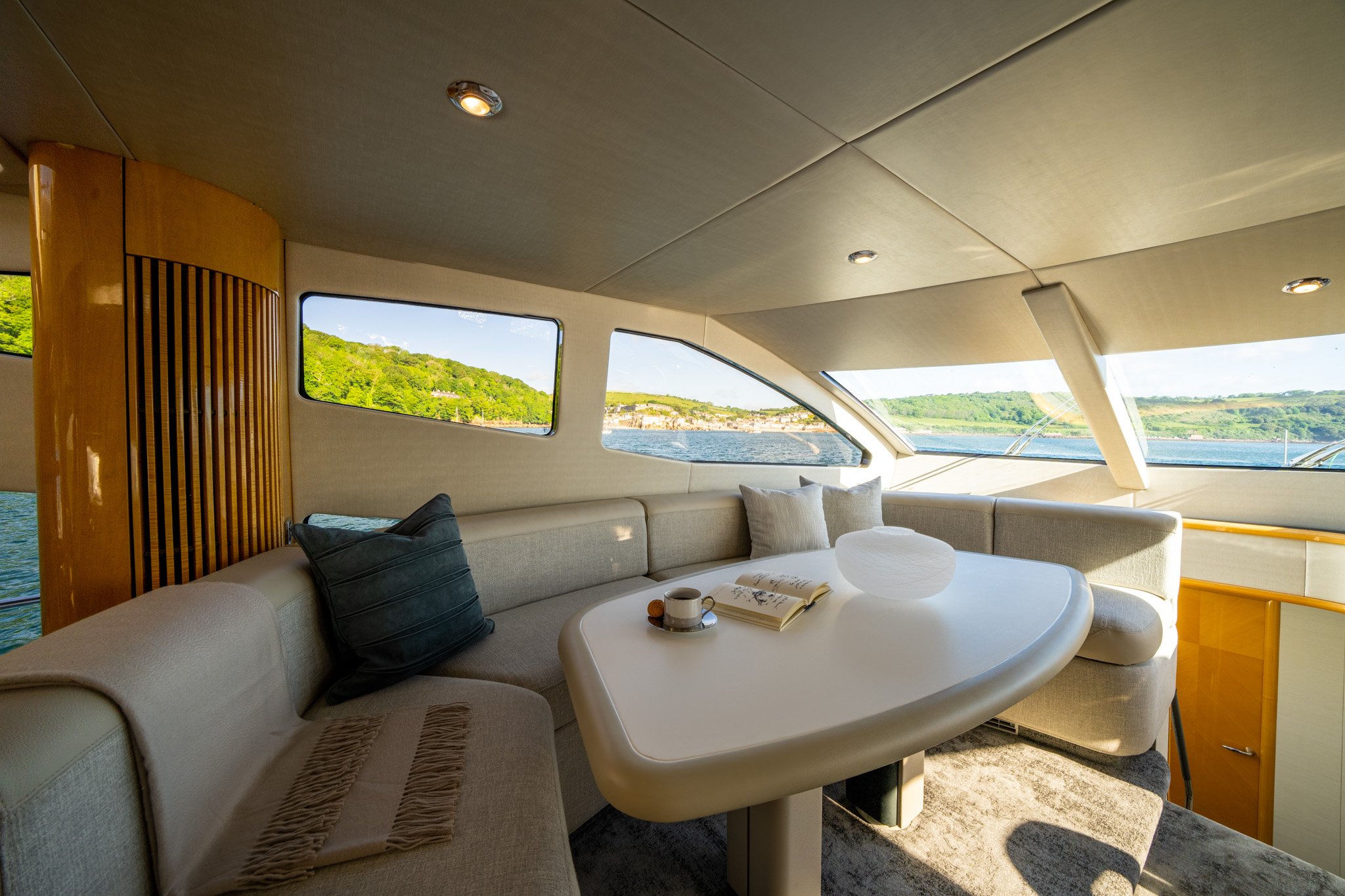 The majority of the refurbishment took place internally however, we have used the same design language for the Cockpit and Flybridge table tops, as we have in the Dinette, tying all three together.