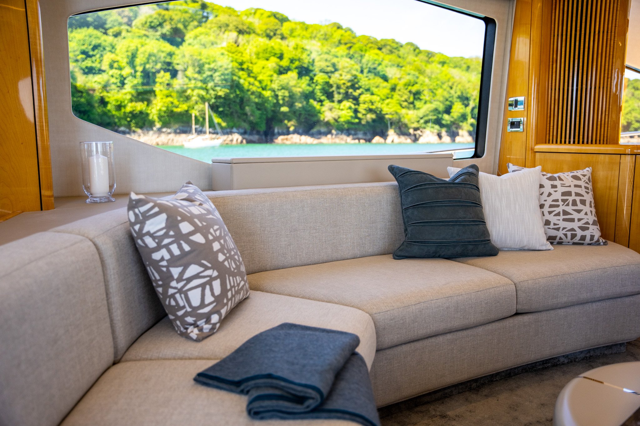 This 2012 Fairline Targa 50GT project was complete within just over 3 weeks on the owners berth. The soft greys, contrasting colours and textures of this scheme now bring a modern high-end feel to this yacht.