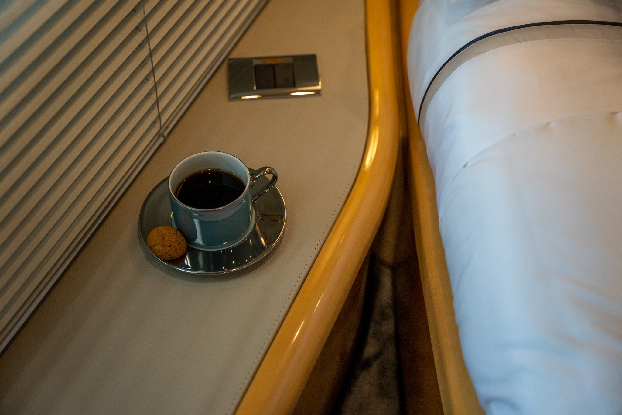 As with all areas aboard – all headlings & sidelings have been replaced, curved leather has been added to the sideboard units to reduce the amount of exposed timber. The headboards beautiful fluting pattern has also been applied to the Stateroom sofa backrest.
