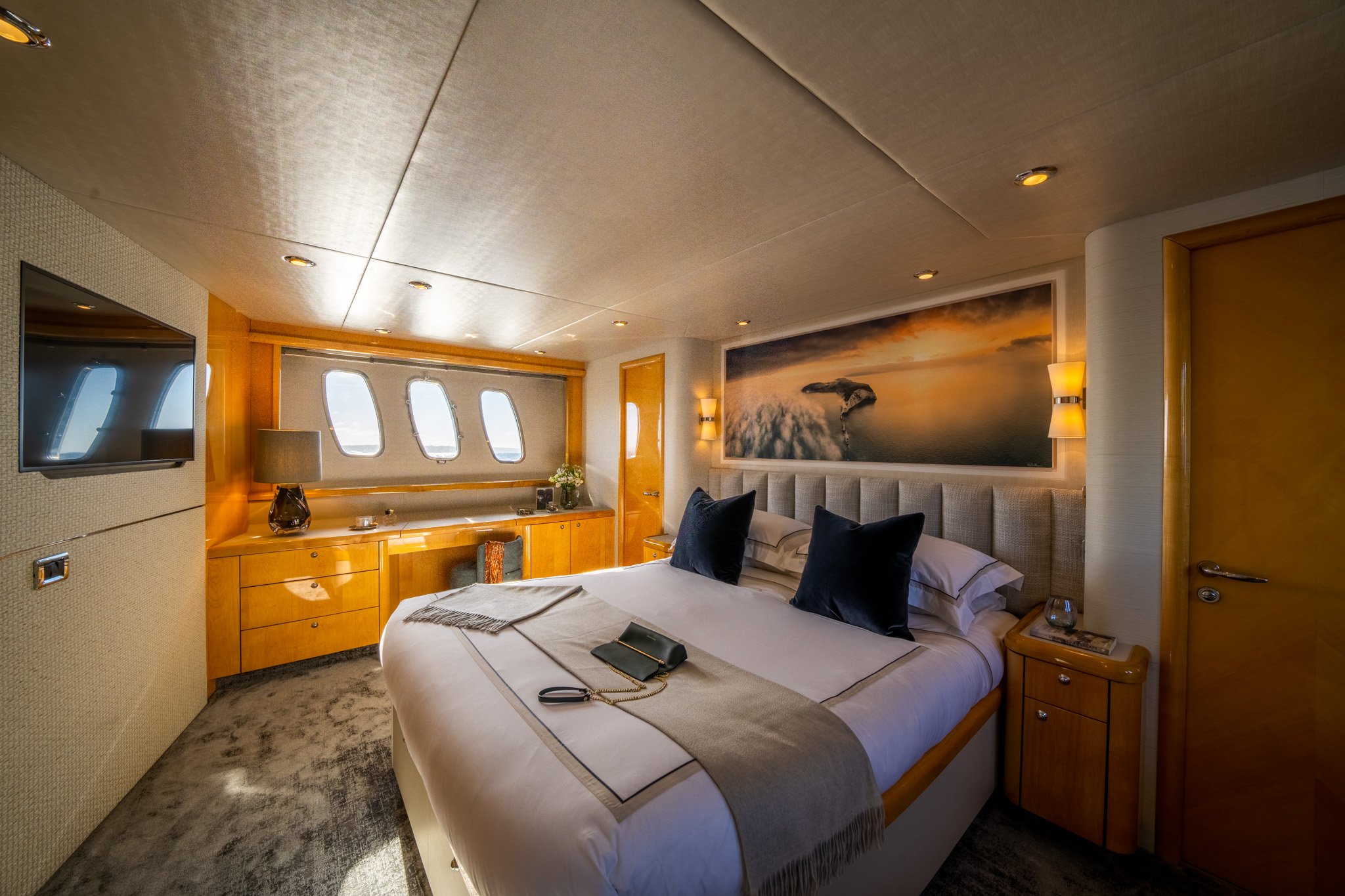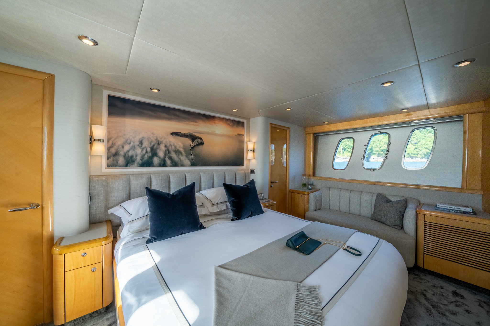 The project comprises of an entire interior refit – transforming the yacht into a contemporary modern space, oozing sophisticated hotel glamour. The owner has been heavily involved in the design – which is inspired by one of their favourite photographs – now inset in the bulkhead, proudly on display in their master cabin.