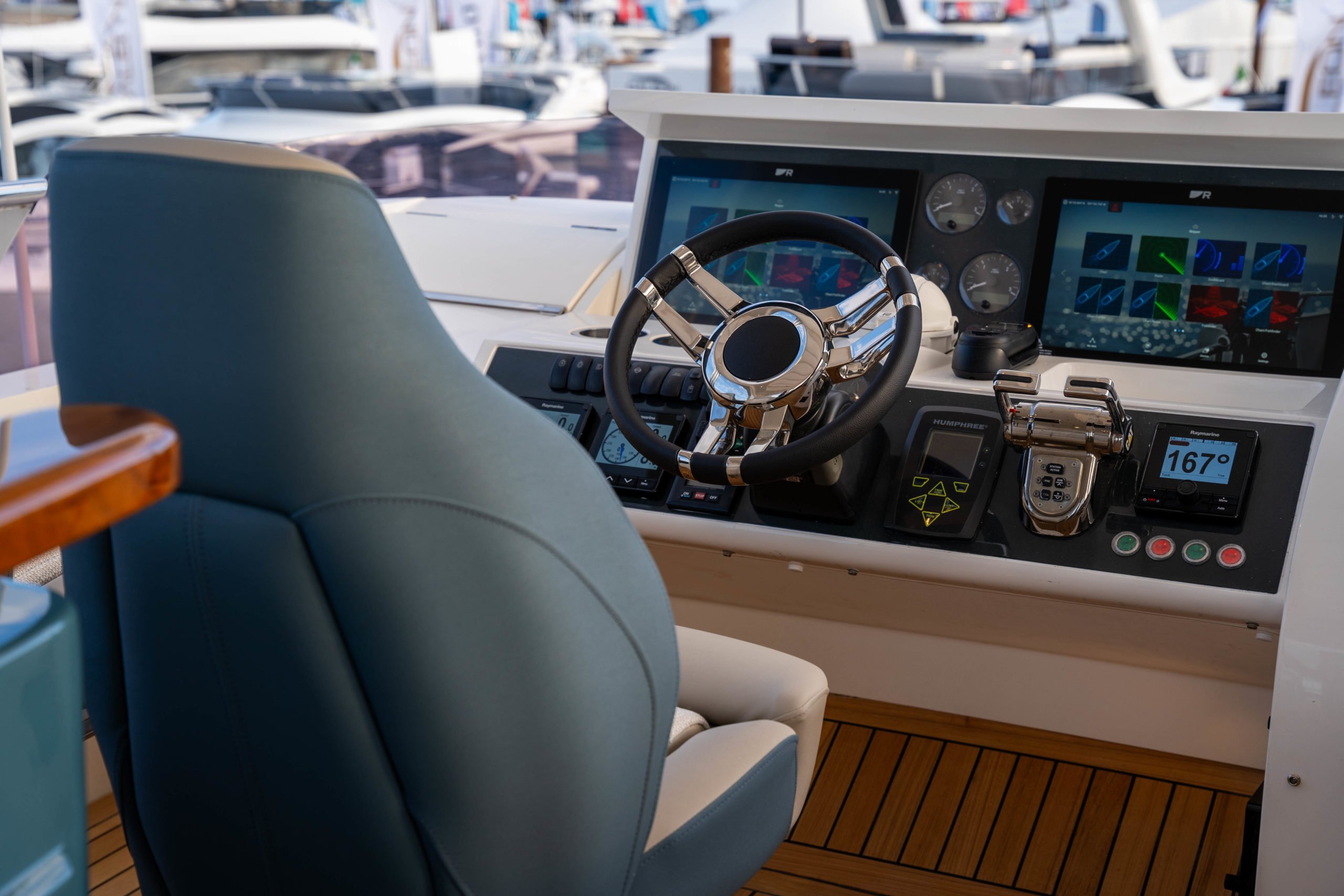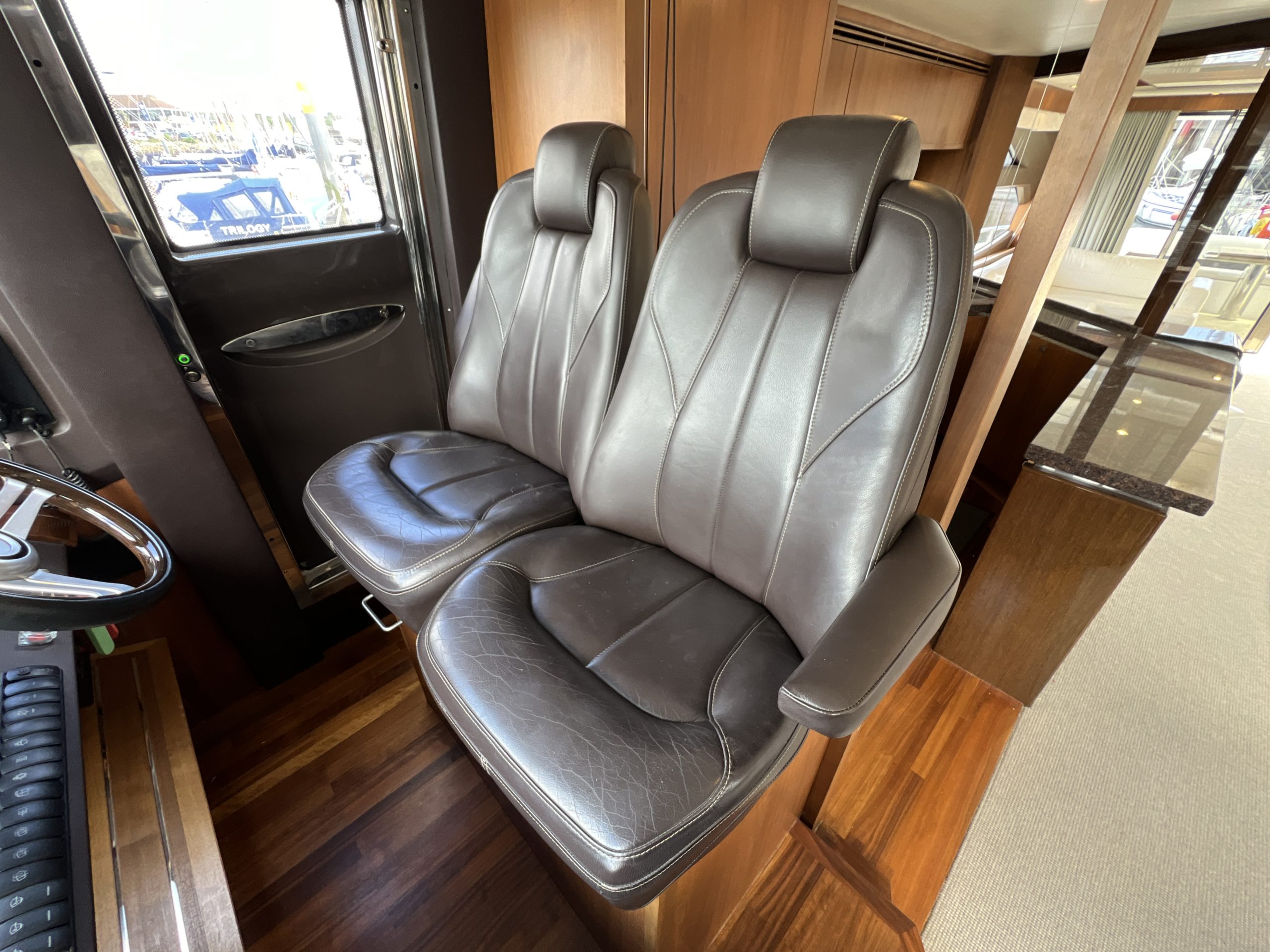 There are new helmseats at the dash, with an all-new navigation suite, new panelling and headlining, duckpond and console pod all re-covered. A complete electronics upgrade including Raymarine screens, i70s, autopilot, transducer, cyclones & VHF.