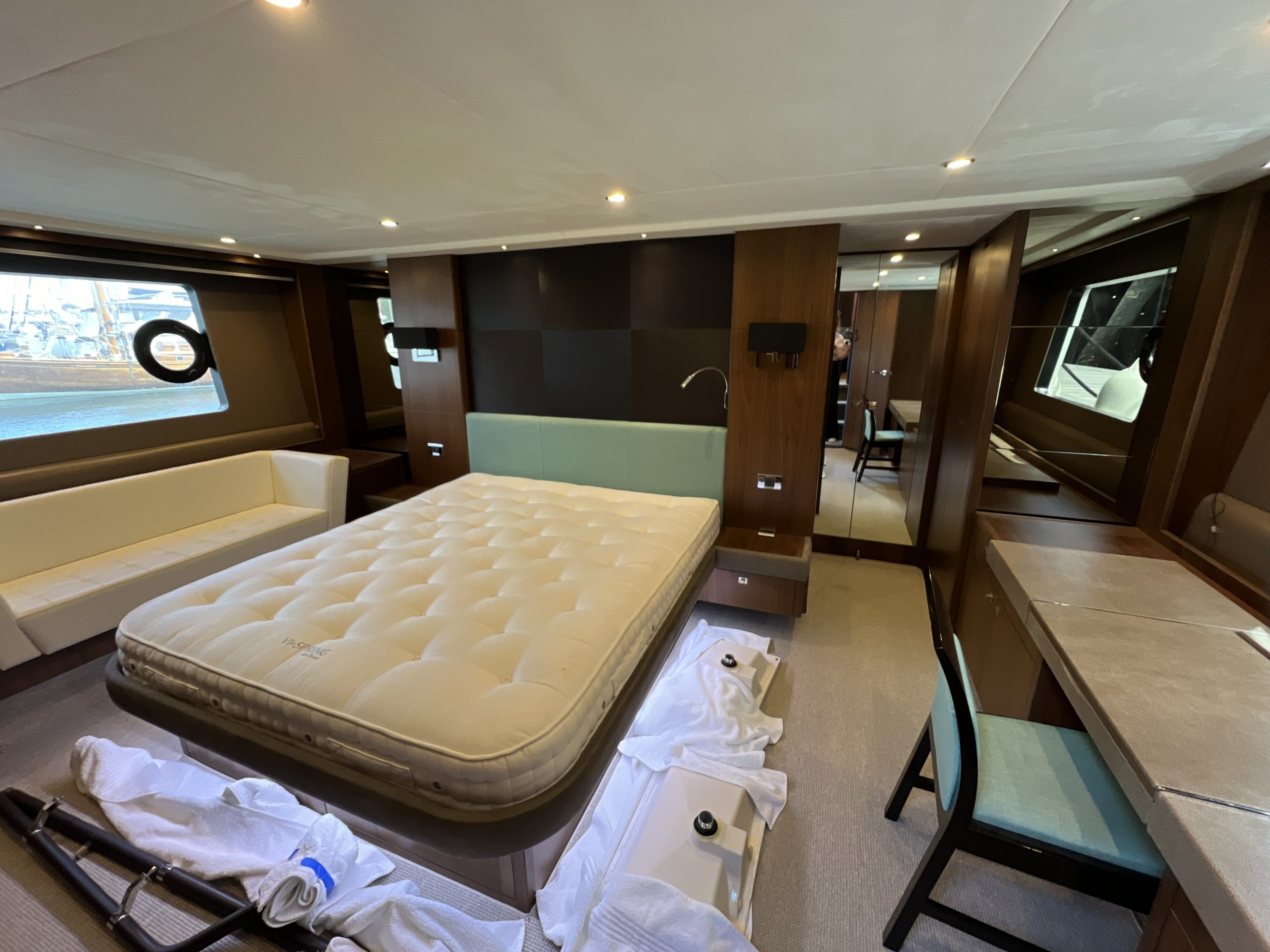 The project underwent major engineering works including upgrading the Air-conditioning from a Mediterranean spec to a Gulf spec & replaced all the chillers, new TVs throughout including modifying the Saloon flooring to fit a sufficient lifter and installing a mirror -tv in the Forward cabin. Shaft seals, 1,000 hour engine service, generator service, full lighting upgrade, wireless chargers, underwater lights, water purification system, Bang and Olufsen sound system throughout internally & externally…to name a few elements.