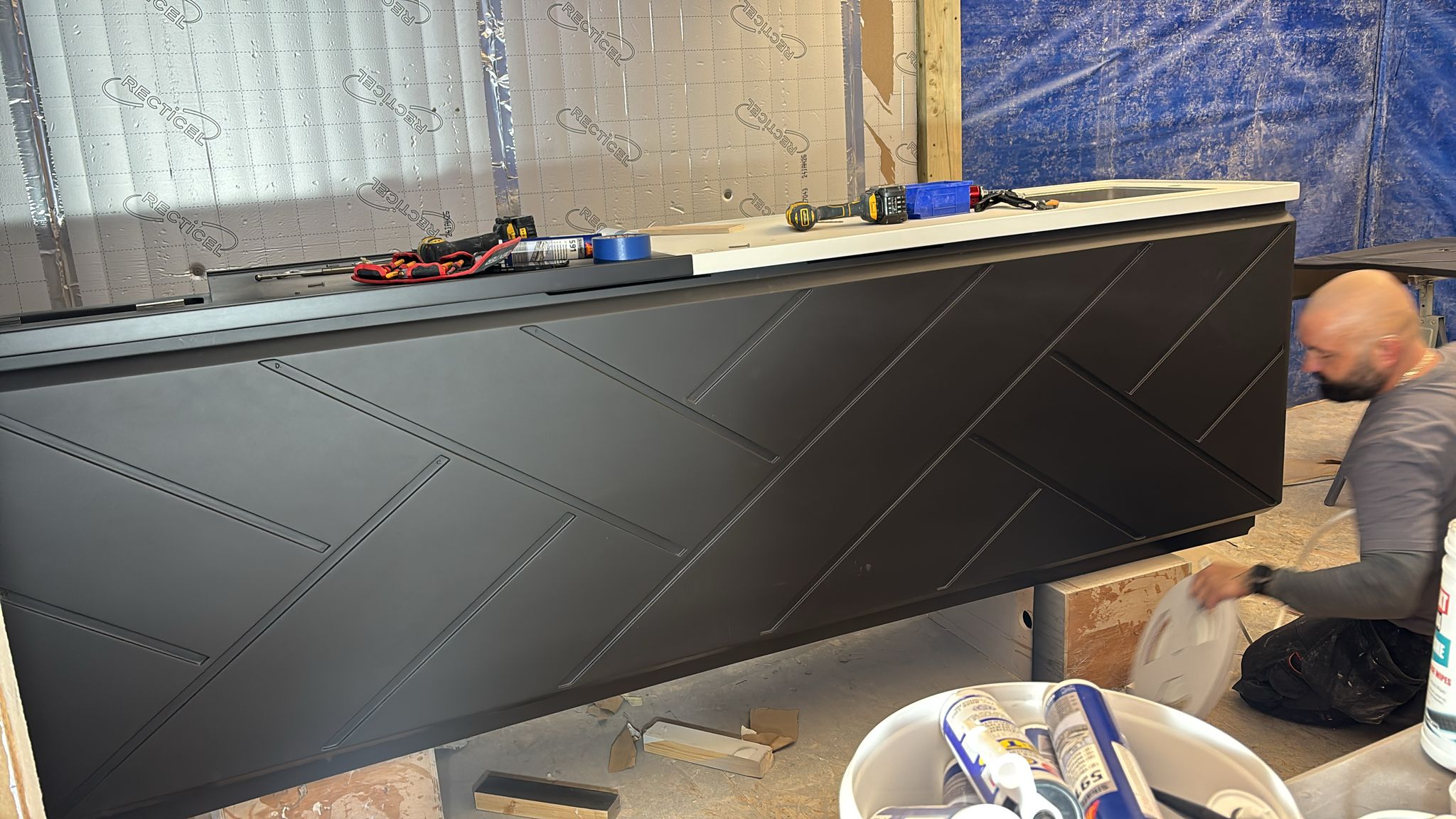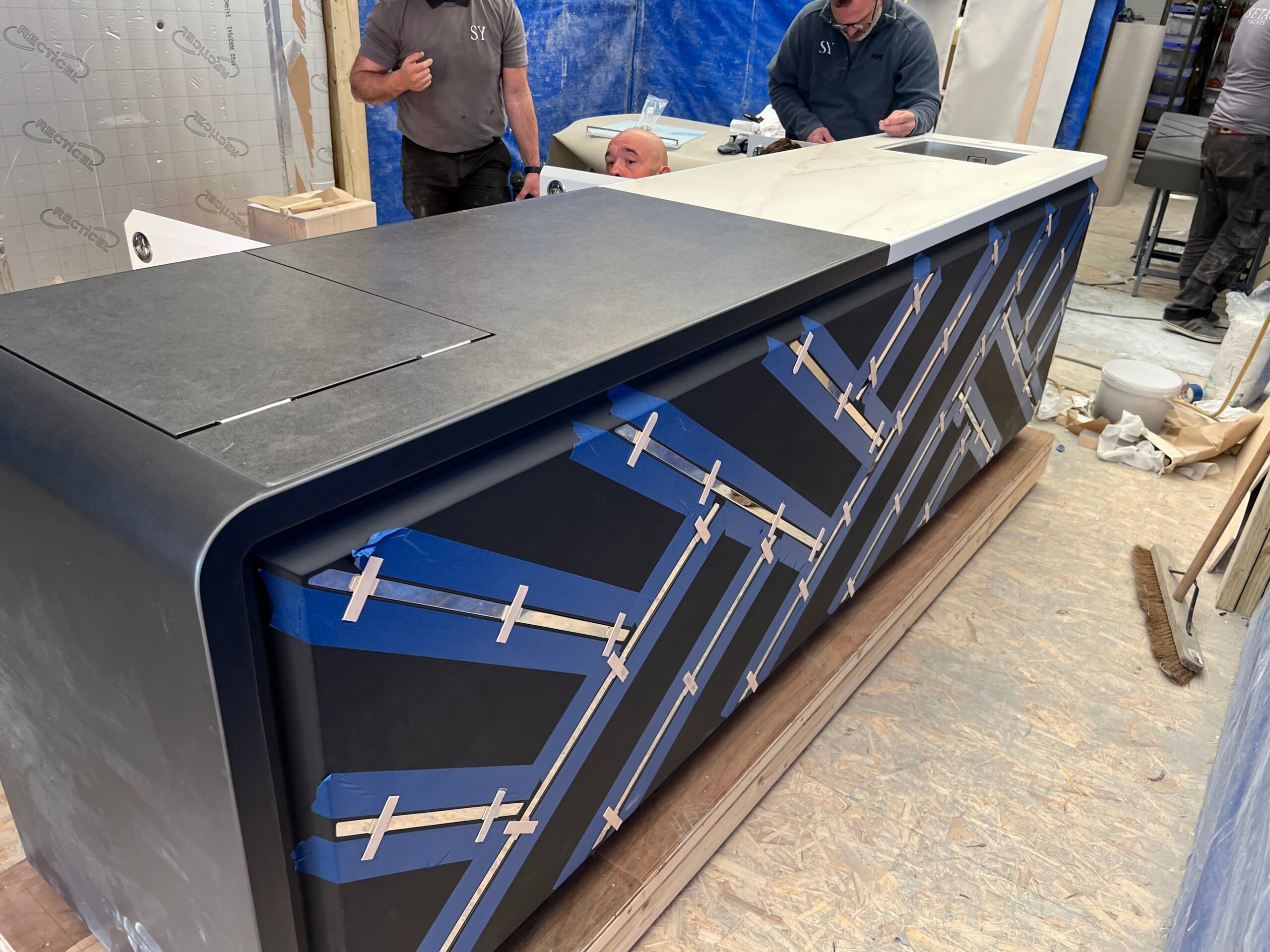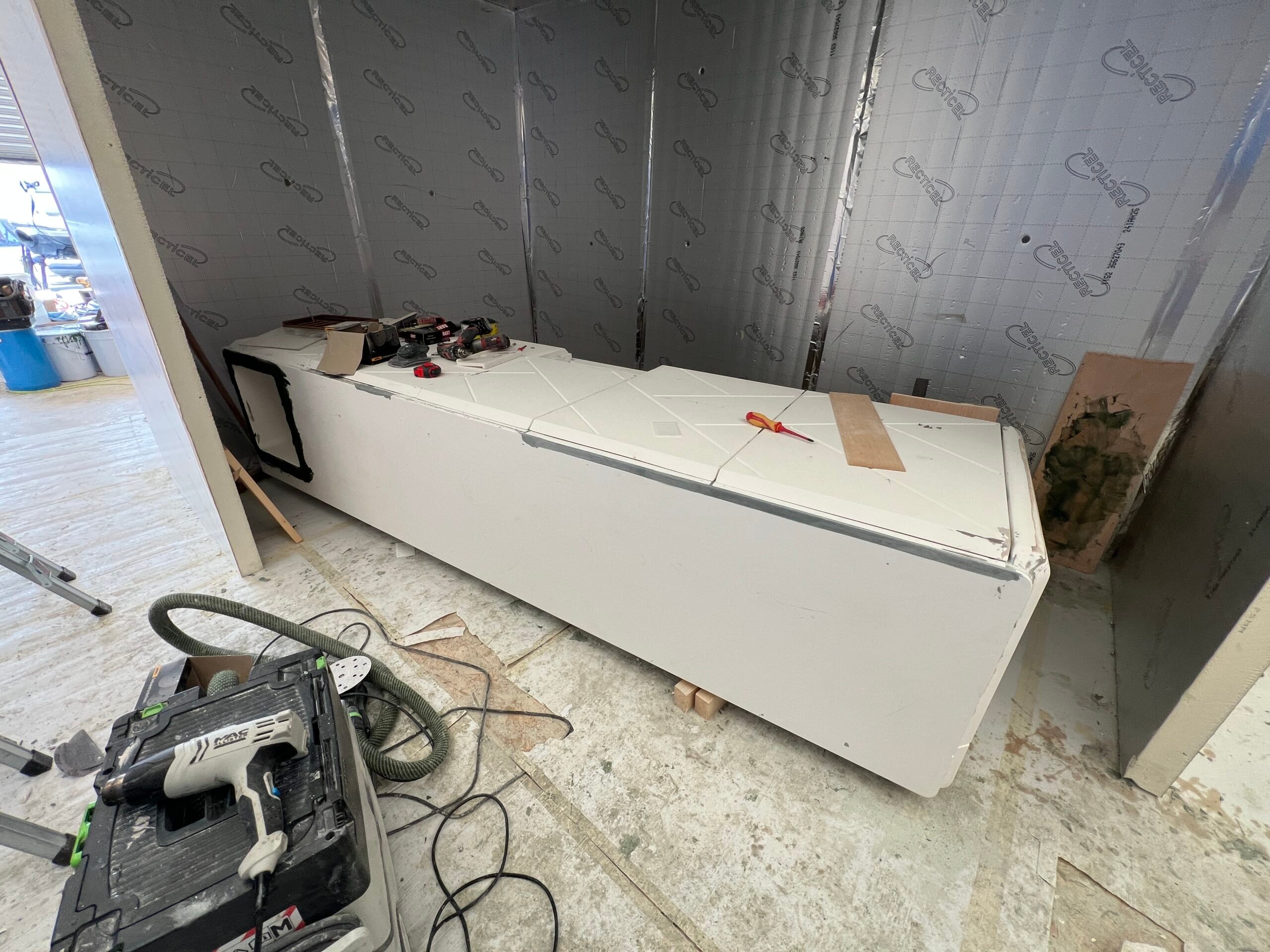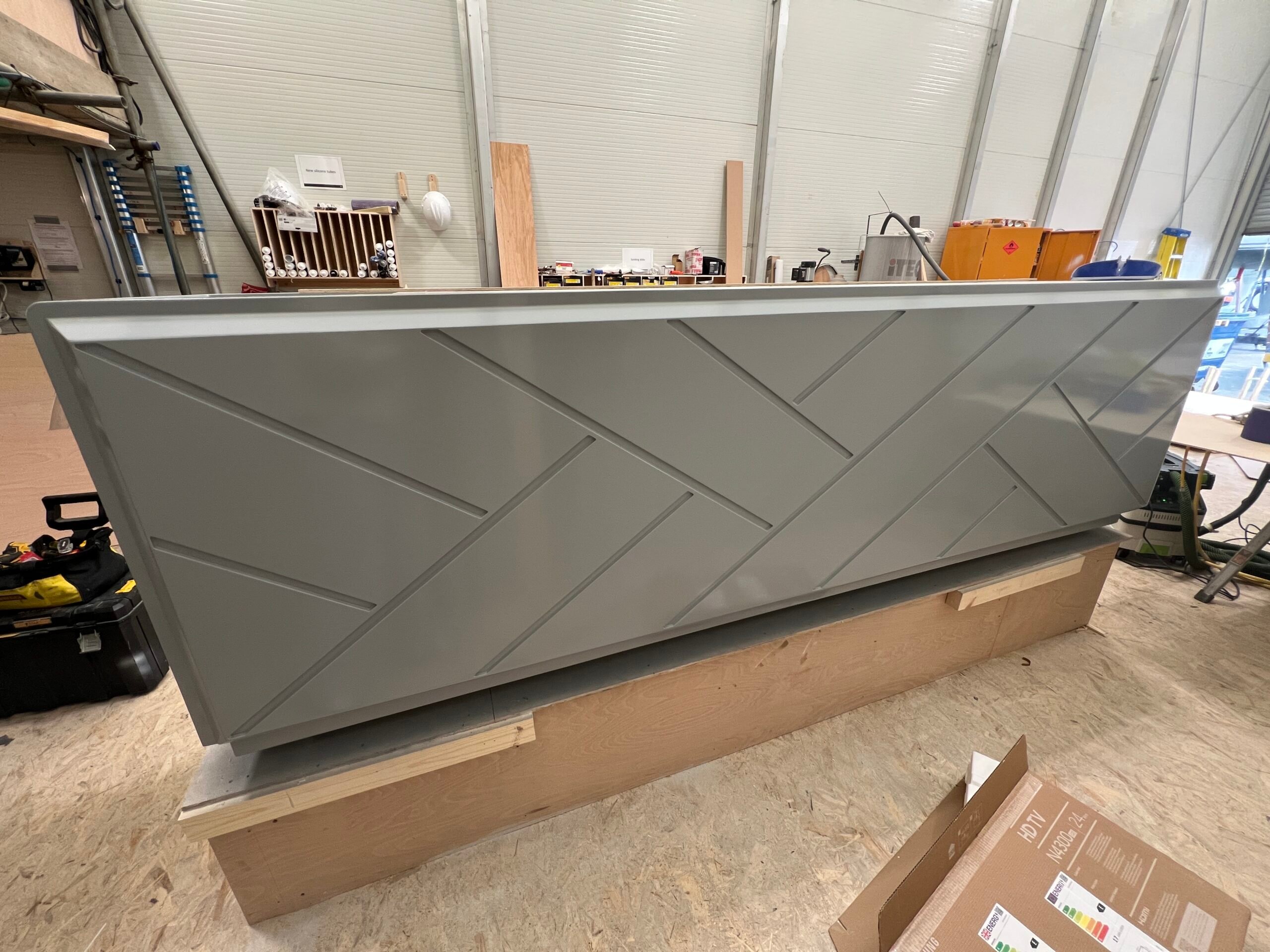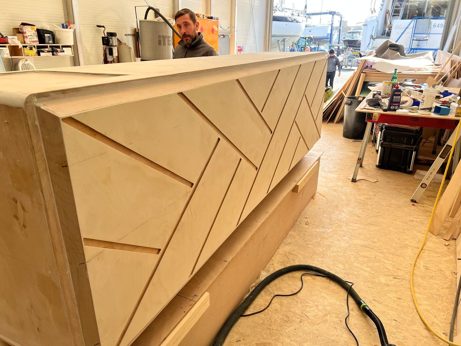 We were asked to remove the 2 existing smaller bars on a Princess 35M Flybridge and create 1 large bespoke bar to stand in their place. This would be a much more user friendly, practical and beautiful looking unit. This involved replacing parts of the teak deck, and designing, manufacturing and engineering a fully custom bar unit from Plywood plug to GRP molding.