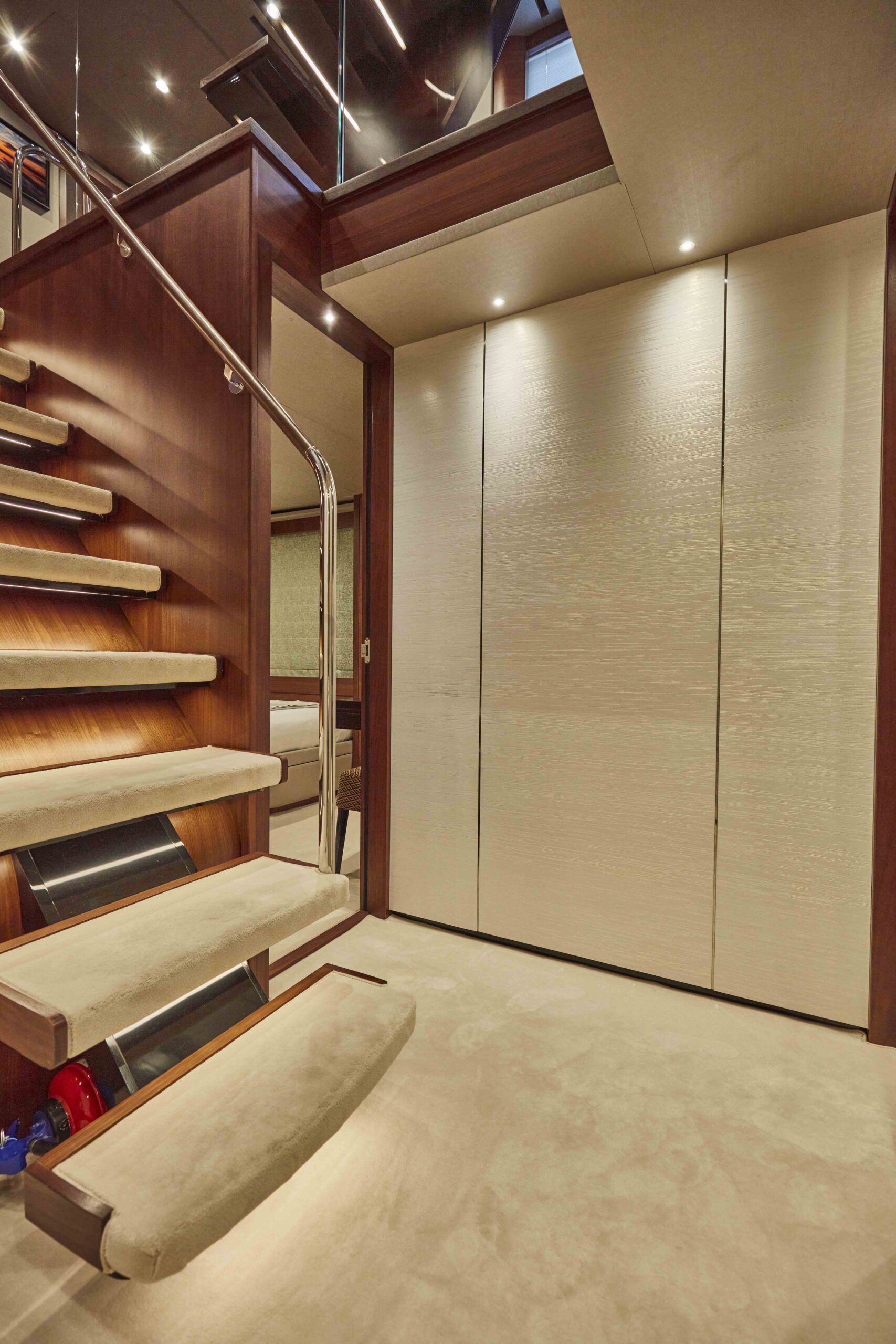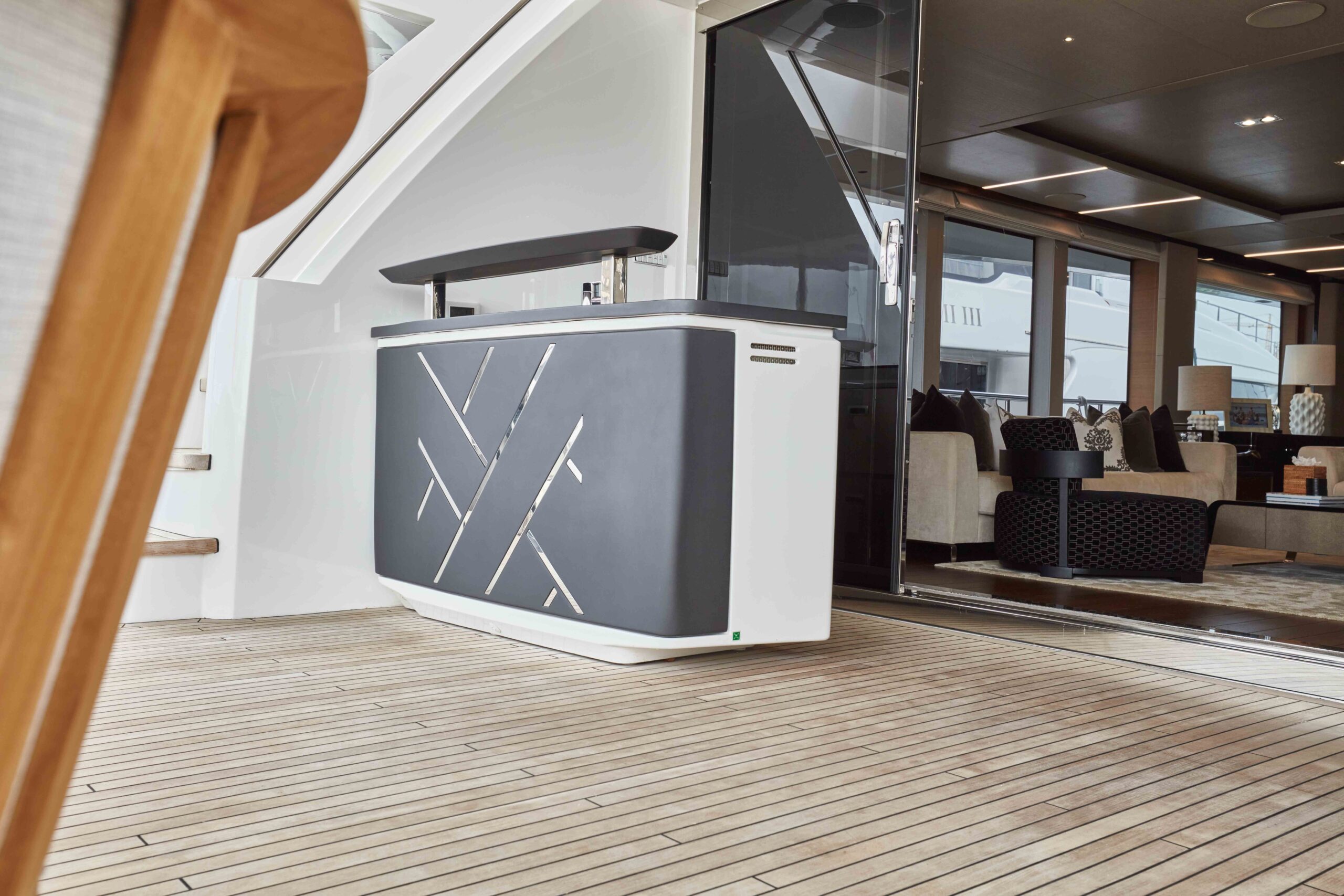 The yacht has been totally transformed…the materials and technology used throughout – from upgrading the air conditioning and a state-of-the-art integrated Bang & Olufsen sound system – are super high-end; the level of design interaction is super yacht standard, as we would normally expect to see being spec’d on a 40+ M boat.